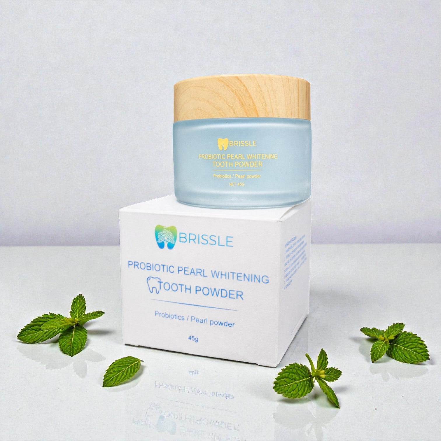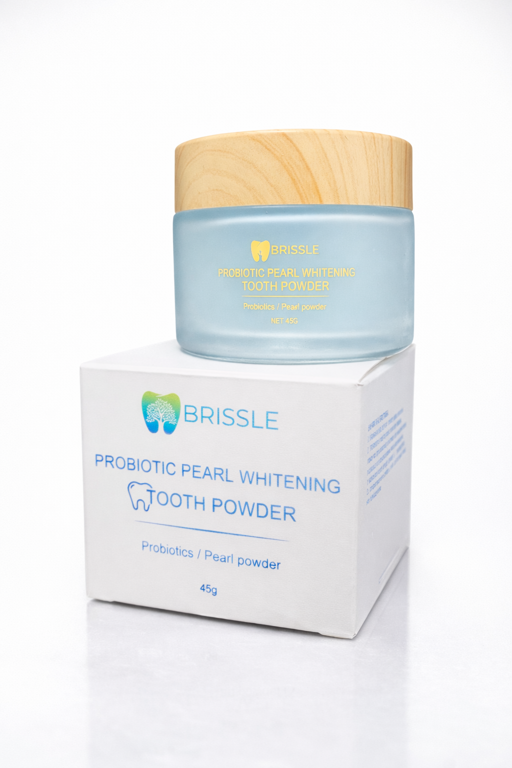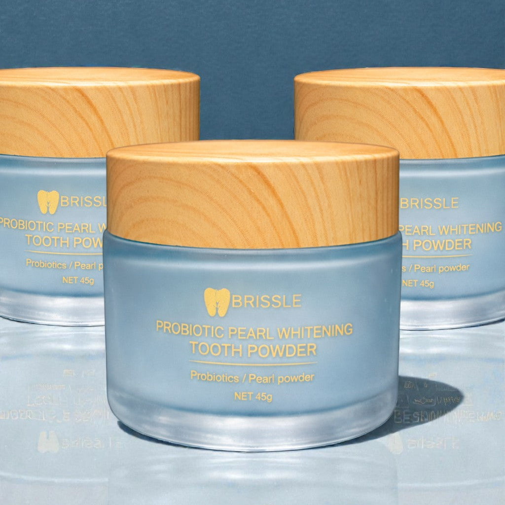 Пудрата на Brissle нежно полира емайла, премахва остатъчната плака и възстановява естествения блясък на усмивката - без агресивно избелване и без чувствителност.
